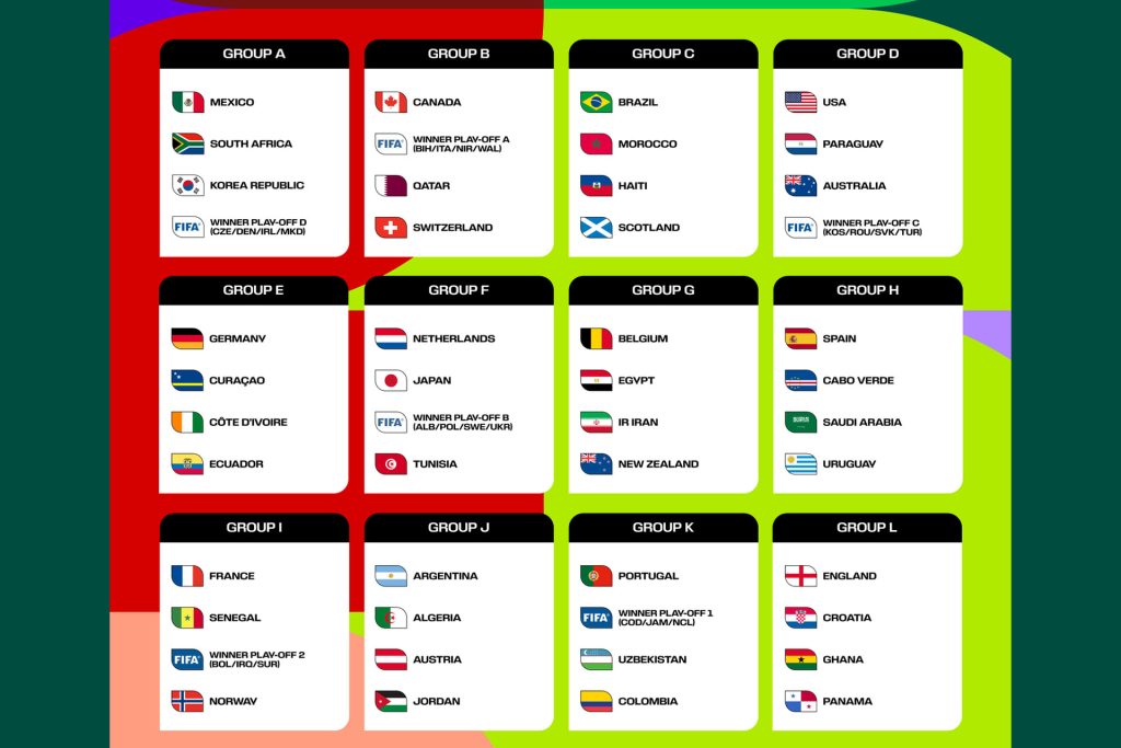 A mudança de 32 para 48 seleções participantes na Copa do Mundo demandou também ajustes no formato do sorteio para composição dos grupos do torneio. De oito, o número de grupos passou a 12, com quatro países em cada. Avançam à segunda fase líder e vice-líder de cada grupo, assim como os oito melhores terceiros colocados.