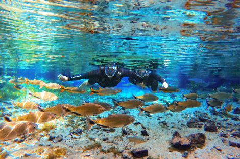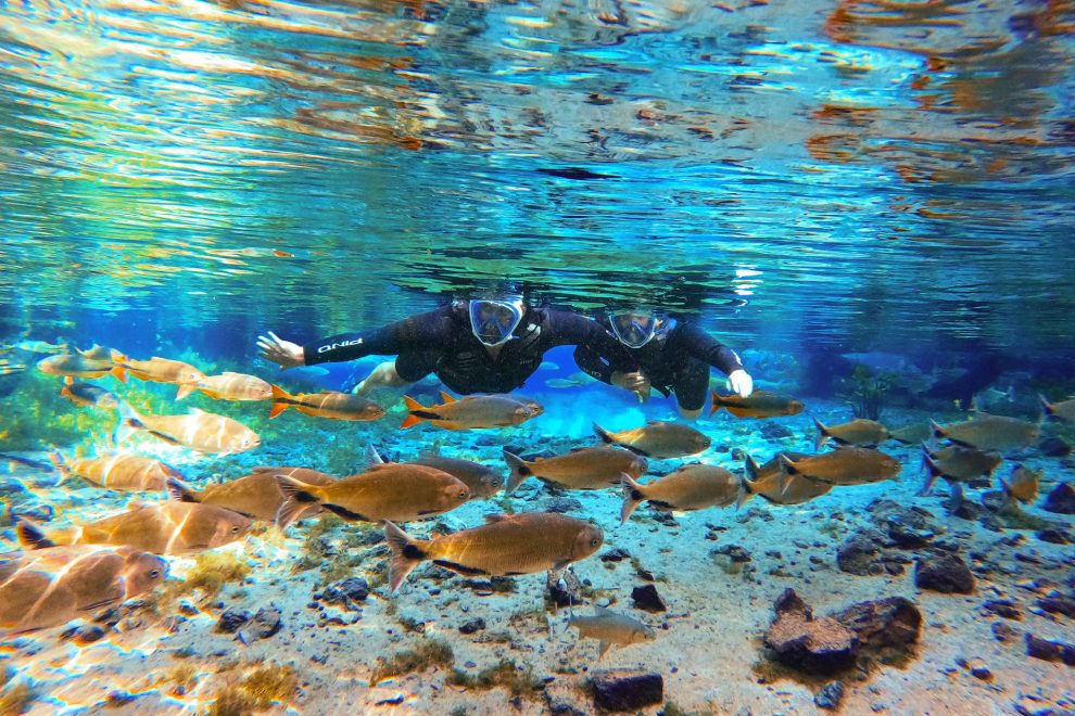 Entre as atividades mais famosas está a flutuação em rios cristalinos. Usando máscara, snorkel e colete, os visitantes descem lentamente pela correnteza enquanto observam peixes coloridos e plantas aquáticas em águas tão claras que a visibilidade pode ultrapassar dezenas de metros.