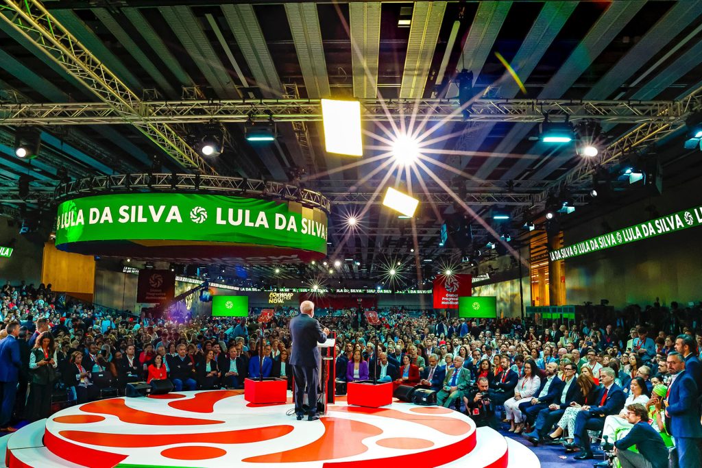 Presidente da República, Luiz Inácio Lula da Silva, durante 4.ª Reunião de Alto Nível do Fórum em Defesa da Democracia. Feira de Barcelona, Espanha. Foto: Ricardo Stuckert / PR
