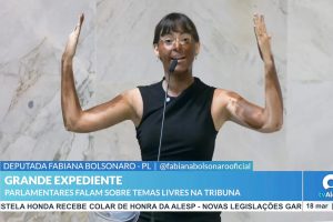 Fabiana Bolsonaro afirmou que ato era uma forma de argumentar que pessoas trans não são mulheres A deputada estadual Fabiana Bolsonaro (PL) se pintou de preto...